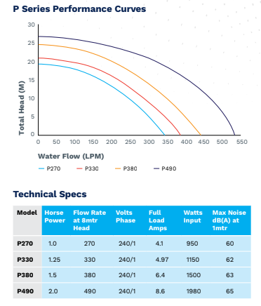 Constructed from high-grade, corrosion-resistant thermoplastic, the P Series is built tough for Australian conditions. Each unit features a stainless steel pump shaft, ceramic seal with lapped true carbon face, and stainless steel assembly hardware — ensuring durability, reliability, and long service life.