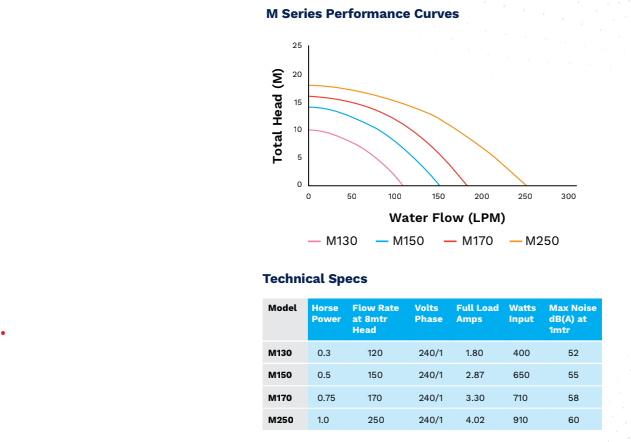 Crafted with premium materials — including a stainless steel shaft, ceramic seal, lapped true carbon face, and stainless steel fasteners — the M Series delivers long-lasting durability in even the toughest conditions.